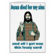 How many times have you received this in your email? Jesus died for my sins and all I got was this lousy...fill in the blanks. Now you can have it on every single item. Get it on t-shirts, mugs, bumpestickers,magnets, even a dog shirt! Great gift for the heretics in your life or the rare Christian with a sense of humour.