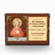 For Extraordinary Ministers of the Eucharist (EMHCs) + In this splendid image, Jesus sits at a table that is set for Passover and covered in a blue and white plaid cloth. He is clad in an eye-catching, soft red garment. It is Maundy or Holy Thursday and His Last Supper with His apostles. It is the moment at which He institutes the sacrament of Holy Communion or the Eucharist. + The figure of Jesus is isolated against a dark red background patterned with stylised artichokes in diamond shapes. The mood here is solemn. Lifting his eyes to heaven, Jesus raises his right hand in blessing. In his left, He holds up a large host, the Eucharistic bread, over the chalice filled with wine. In Latin--in a banderole beneath the scene--are the words of Consecration: “This is My Body… This is My Blood” (“Hoc est corpus meum… Hic est sanguis meus”). In remembrance of Him, at every Mass, the priest reenacts this sacred action turning ordinary bread and wine into Christ’s Body and Blood. + Image Credit (SAU 045): Antique devotional print of Jesus Instituting the Holy Eucharist, originally published in chromolithography by the Socièté de St. Augustin, Bruges, Belgium, late 19th century, from the designer’s private collection of religious ephemera.