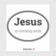 JESUS IS COMING SOON Custom-Cut Vinyl Sticker. Black and White Simple Text. Let people know that your King is returning soon to set things right in this broken world. Repent and believe that Jesus is the Christ (Messiah), the one who came into the world 2,000 years ago to die for our sins and is coming back to rule and reign for a thousand years!