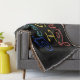 A quality printed throw has its advantages. This is a much finer weave throw than its loopier cousins, and though lighter, it is worth the investment for custom room accessorizing. The back is much prettier than the typical brown, and the fringe on the long sides very vivid, the selvage nicely done. Before photographing, I washed the throw in cold water, delicate, with a thicker woven throw the same size. On tumble dry low, this throw was dry in half the time as the other. This is a very practical quality if you use throws for furniture covers or to wrap up in frequently. The sleekness of the fabric makes it a great layer for accenting or protecting without the feeling of sitting on too much stuff. Perfect for napping or when you feel a light chill coming on. The color printing is beautiful and on this fabric, matched the design and color of my Photoshop image. This is an advantage for blending room fabrics and colors. The fringe on the short sides prints the colors from the design image and therefore varies from the side fringe. I streaked a white fractal line through the plaid pattern to give the illusion of weaving. This printed as crisp as an illusory thread, and put some white in the short side fringe, showing another advantage of print vs loomed- for artistic purposes, line lines, detail, and color integrity can be planned and preserved. My loomed throws have color limitations and more of a needlepoint texture. Print throws reproduce an exact image. The throw felt a little stiff straight out of the package, but this went away in the first delicate wash. Of course I searched the wash water for ink or bleeding and there was none.