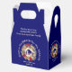 Festive deep blue Christian JESUS IS THE REASON Christmas favour box, showing a nativity scene inside a festive Christmas wreath. The inspirational quote reads JESUS IS THE REASON FOR THE SEASON in curved text, and underneath there is a placeholder greeting, MERRY CHRISTMAS and ISAIAH 9:6. ALL TEXT IS CUSTOMIZABLE, so you can create your own personalised text. This is a great reminder of the real meaning of Christmas behind the tinsel and baubles, and would make an ideal addition to your festive party tableware and supplies. Choose from a wide selection of Christian Christmas cards and gifts designed by Berean Designs. Also available in red, teal, green and yellow.
