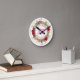 The clock did not take as long to arrive as I thought it might and was extremely well packaged. I didn't do the measurements so I didn't realize it is a little smaller than the average clock but that does not matter (just make sure you check if that's important to you).It is really nifty! It seems very solid and well made not flimsy at all. It has been going well and has kept good time in its few weeks on my wall. Nice product. Gets noticed too! Nicer in real life than the picture but true to the picture