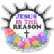 Jesus is the Reason - Easter, this design features an Easter Floral Wreath with flowers and Easter Eggs and a Crown of Thorns as well as Text Saying, "Jesus is The Reason".