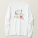 This playful sweatshirt features the saying "Oh Holy Night" with alternating colours on lowercase letters with sparkle accents. Colours include pink, red, green and light blue.
