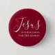 Jesus is the reason for the season. Share the reason for the season with this stylish, simple yet elegant button. This Christian faith holiday button is beautiful. "Jesus" is written in modern script with "the reason for the season" in elegant simple typography. The text colour is white on a deep red background. This religious Christmas accessory would be great for sharing the meaning of Christmas with Christmas gifts. Jesus. God's gift. Came down to earth on Christmas. It would suit well to church groups and Bible Study groups and a faith filled family. The minimalistic script is editable.