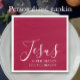 Jesus is the reason for the season. Share the reason for the season with this stylish, simple yet elegant napkin. This Christian faith holiday napkin is beautiful. "Jesus" is written in modern script with "the reason for the season" in elegant simple typography. The text colour is white on a deep red background. This religious Christmas holiday napkin would be great for your family or church Christmas dinner. Jesus. God's gift. Came down to earth on Christmas. It would suit well to church groups and Bible Study groups and a faith filled family. The minimalistic script is editable.