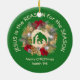 Modern green JESUS IS THE REASON Christian Christmas ornament for the Christian holiday season, showing a nativity scene inside a festive Christmas wreath. The inspirational quote reads JESUS IS THE REASON FOR THE SEASON in curved text, and underneath there is a placeholder greeting, MERRY CHRISTMAS and ISAIAH 9:6. The background is green. ALL TEXT IS CUSTOMIZABLE, so you can create your own personalised text. This is a great reminder of the real meaning of Christmas behind the tinsel and baubles, and would make an ideal stocking stuffer or favour gift. Choose from a wide selection of Christian Christmas cards and gifts designed by Berean Designs. Also in yellow, red and blue.