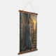 The polyester fabric displayed many wrinkles and several sharp creases throughout. At the bottom of the tapestry, I noticed a bulge in the fabric because it was not pulled tight enough before being connected to the wooden boards. It took me over an hour to spay water on the tapestry before putting it on an ironing board where I used a warm iron over a polyester cloth to remove the wrinkles and creases in the material. I was able to get out the wrinkles and creases that made that tapestry look as beautiful as its picture.