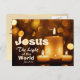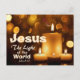 Beautiful scripture postcard features Bible verse John 8:12, Jesus the Light of the world. The background has warm lit candles and golden abstract lights. The back greeting can be personalised and used for many different occasions.