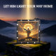 This powerful and moving design captures the theme of Jesus as the Light of the World. The artwork, featured on a square wall clock, displays the figure of Christ standing triumphantly on a rocky mountain summit, overlooking a dramatic landscape of valleys and hills. He is dressed in flowing white robes and has his arms spread wide in a gesture of divine blessing. The scene is illuminated by an intense golden halo or sunburst that radiates light from behind his head, breaking through dramatic clouds. The bold name "JESUS" anchors the lower portion of the design. The core message of Christian faith is quoted from John 8:12: "I am the light of the world." This incredible image provides a spectacular visual representation of faith, serving as an inspiring timepiece and striking centerpiece for any faithful home or sacred space.