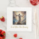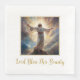 This paper napkin is shown in the standard dinner size with an art print of Jesus.