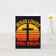 Jesus Loves Bruh Cross Christian | Greeting Card . A simple design created for broad appeal. This product reflects a neat and modern design. This product offers a simple yet appealing look.