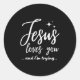 Jesus Loves You And I'm Trying Funny Christian Eva Classic Round Sticker