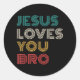 Jesus Loves You Bro, Funny Christian Faith Retro Classic Round Sticker