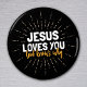Jesus loves you - God knows why. A funny christian quote that's either a positive affirmation of God's love ... or a slightly sarcastic insult. You decide! An ideal gift for someone of faith with a wicked sense of humour.