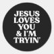 Jesus Loves You I'm Trying Design Classic Round Sticker