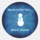 Jesus Loves You Snow Much! Christian Snowman Blue Classic Round Sticker