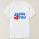Bright blue and red Christian message of the love of Jesus is perfect attire for Christian gatherings, evangelism and community outreach of any kind. Bright, cheerful reminder to all of God's love. That's good news.