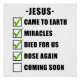 JESUS' MISSION CHECKLIST: Came to Earth, Miracles, Died for us, Rose Again, Coming Soon. Show people the faithfulness of GOD and Jesus Christ with this born-again Christian faith graphic design. Looking forward to the Second Coming and Rapture.