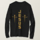 Show your devotion with the "JESUS" Nail Cross Christian long sleeve T-Shirt. Featuring a bold faith-inspired design with golden coloured letters, this comfortable and durable tee makes a perfect gift for believers or a meaningful addition to your wardrobe. This long sleeve t-shirt is comfortable, casual and loose fitting, made from 6.0 oz, pre-shrunk 100% cotton, with double-needle stitched bottom and sleeve hems for extra durability has a smaller matching image on the back our tees fit and wears well on any and everyone.