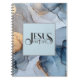 This notebook is shown with a Jesus is the way print and is shown in an ink abstract print in a multi colours blue and grey.
