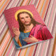 This gorgeous antique image of Jesus Christ features beautiful detail and bright colours. Elegant reds, pinks, blues and yellows make this devotional image perfect for home decor and much more. Share this unique design on holy cards, funeral cards, invitations and correspondence.