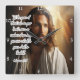 This serene clock face features a depiction of Jesus Christ amidst heavenly light and clouds. Overlaid on the left, a script quote from "Colossians 3:15" reads: "Let the peace of Christ rule in your hearts, since as members of one body you were called to peace. And be thankful". The design combines spiritual guidance with timekeeping, symbolising Christ's enduring presence and the pursuit of inner peace.