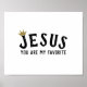 Modern Christian Quote Sign "Jesus You Are My Favourite" with a Gold Crown Sitting On Top of the Letter J.