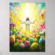 Jesus Christ Easter Resurrection scene. He is risen. Colourful easter egg religious art.