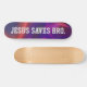 Modern, simple design. Jesus Saves Bro. Abstract red neon purple background with light grey type. #christianskateboards #jesusskateboards