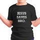 Modern, simple design—Jesus Saves Bro. White lettering on Black background.