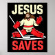 Jesus Saves Ice Hockey Goalie Player Christian Fun Poster