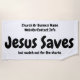 This religion-based design features the phrase "Jesus Saves" and additional text that says, "We just help you find Him." You can use it to spread the word of God and virtue and life-saving teachings of Jesus. The design is customisable to help promote your Christian church or business (evangelical or any kind of denomination). You can add a name, website, address, phone number, email, or other contact details to the 2 customisable lines. This way, you can order this Jesus Saves product no matter what church you attend because you can add your own church's name and contact info.