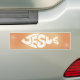 A refreshing & modern interpretation of "JESUS" bumper sticker, text in fish shape & cheerful orange background.