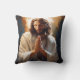 This throw pillow is shown with a lovely photo art print of Jesus in prayer.