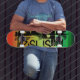 Jesus; Vibrant Green, Orange, & Yellow Skateboard