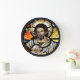 Wall Clock, 25.4 cm Round Black Wooden Frame