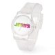 My granddaughter is graduating with her PhD on May 2nd and I can’t wait to give her this beautiful timepiece. Such quality and workmanship. I’m glad I bought the clear because she can wear it with anything. Thanks so much for quality and fast shipping. Excellent. Very bold print