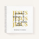 JESUS Waymaker Christian Notebook, with some of the popular descriptions of the Lord JESUS displayed in a crossword format in bold black typography. In the background, the Name of Jesus is repeated three times in gold coloured serif font. Underneath the design there is placeholder text, which is customisable, so you can add your name and initial or create your own text. This would make a great gift for birthdays, Christmas, and for anyone who loves the following inspirational quotes based on Bible Scripture: God will make a way in the desert; God always keeps His promises; Jesus is the Light of the world, and God is One who works miracles. Choose from a wide selection of matching Jesus Waymaker clothing, home decor, cards and gifts, designed by #bereandesigns