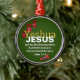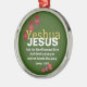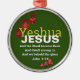Stylish Christian Christmas YESHUA JESUS Metal Ornament with faux red glitter baubles design. YESHUA is written in faux gold typography, against a rich GREEN background. The Scripture verse is John 1:14 - THE WORD BECAME FLESH. The phrase and Scripture reference are CUSTOMIZABLE, so you can replace with your own choice of text. This would be a great Christmas stocking stuffer, stocking filler, favour giveaway, etc. Other colours available.