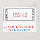 Show the world your faith and what you stand on by letting everyone know that Jesus is your ticket to Heaven. Great to wear at religious events, church services, church camps and MORE!