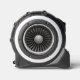 Front view of a modern jet turbine engine showing the fan blades and shiny silver engine cowling.