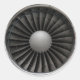 Front view of a modern jet turbine engine showing the fan blades and shiny silver engine cowling.