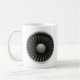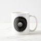 Front view of a modern jet turbine engine showing the fan blades and shiny silver engine cowling. Turbofan engines are commonly used on commercial jetliners for their high thrust and fuel efficiency, along with lower noise than turbojet engines.