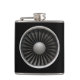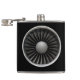 Front view of a modern jet turbine engine showing the fan blades and shiny silver engine cowling. Turbofan engines are commonly used on commercial jetliners for their high thrust and fuel efficiency, along with lower noise than turbojet engines.