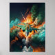 Experience the adrenaline rush of 'Firestorm Fury,' a dynamic artwork capturing a fighter jet slicing through a cloud of fire and smoke. With vibrant orange and green hues and striking paint decals, this piece combines camouflage with chaos.