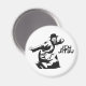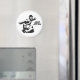 This awesome round magnet contains a black graphic design and black text, looks best on a light background colour.