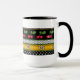 Cheerful original design featuring stacked borders of Black on white pin dots, white on black polka dots, luscious red cherries w/ green leaves on black, white Stars of David outlined in black on a daffodil yellow background & pinstripes of spring green. Mug available in 2 sizes.