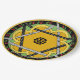 Cheerful original design featuring a a central mandala that intertwines a daffodil yellow flower with a polka dot Star of David all set on a spring green background, a border of red cherries & green leaves against black and a final border of Stangl yellow. Perfect for outdoor parties, the kids table for family get-togethers or luncheon plates.