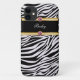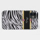 Jewel monogram iPhone 5 case with pretty printed pink diamond gems bling and cool zebra stripes pattern with printed gold accents. Personalise the monogram with any name or initials. Protects your mobile phone in style and has openings for all your ports and buttons. Designed for ladies or girls who like zebras or diamond jewels.